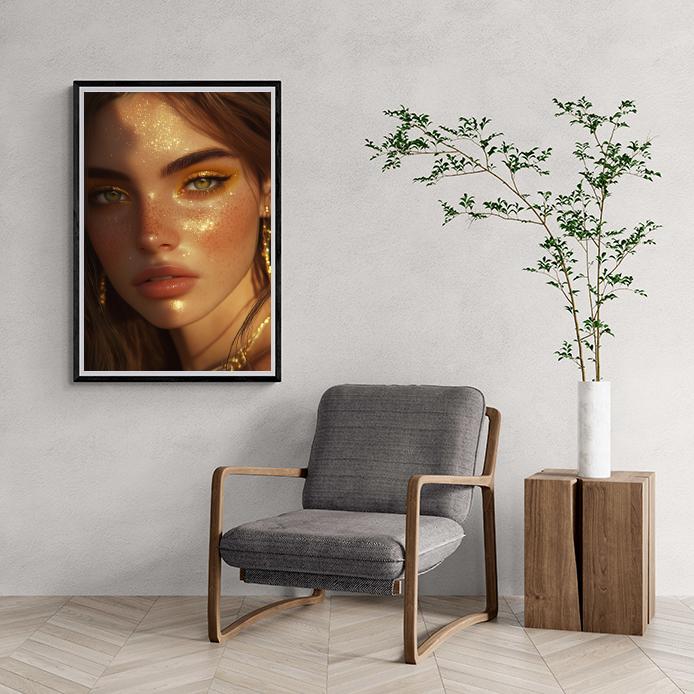 Mit seinen goldenen Akzenten und seinem anspruchsvollen Look verleiht dieses Poster jedem stilvollen Wohnzimmer einen Hauch von Glamour. Es ist die perfekte Ergänzung für ein schickes Interieur.