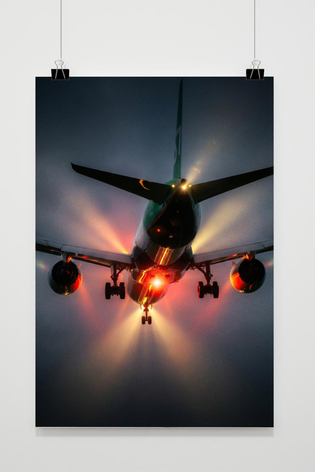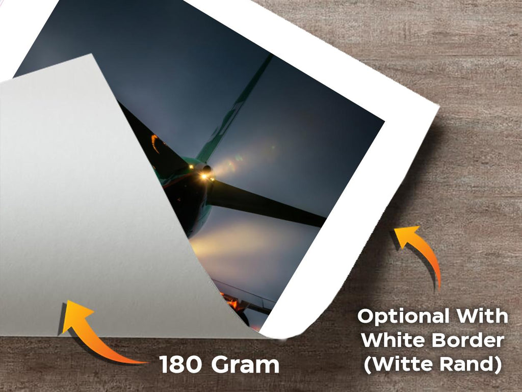 A unique digital art poster of the underside of an airplane. Printed on high quality 180 grams Matte Coated Paper in the Netherlands, FSC certified. This poster is delivered without a frame.