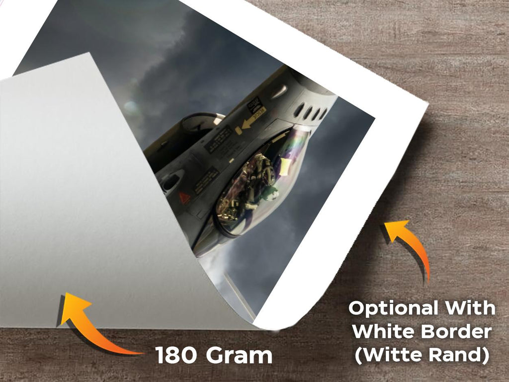 Deze Straaljager met Raket poster toont een unieke digitale kunst op hoge kwaliteit, geprint op 180 gram Matte Coated Papier. In Nederland geprint en FSC-gecertificeerd.